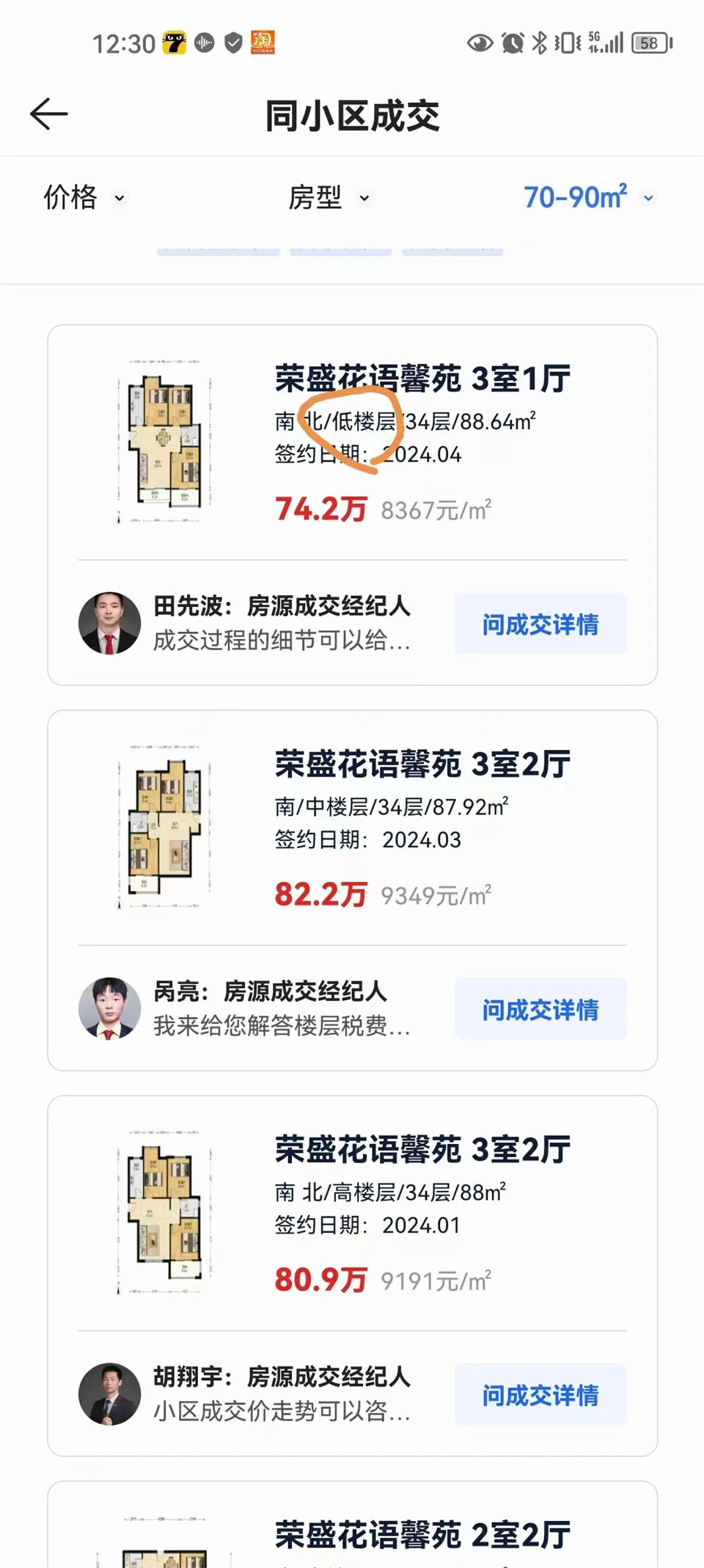 二手房正常樓層能賣80萬左右(最近貝殼交易記錄正常樓層82萬,低樓層也賣了75萬,低樓層本身便宜一些),咱67萬撿漏成功(單價才7500元一平),實打實的低于市場價10來萬,比市場價去買二手房香多了。